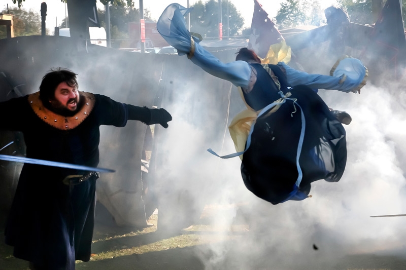 Immer wenn die Landesschauspielbühne in unser beschauliches Städtchen kam, stand ich als Fotoreporter seitlich an der Bühne und knippste, was das Zeug hielt. Einige Bilder schafften es sogar ins lokale „Käsblättle“. Das war mir als ambitionierten Dreikäsehoch jedoch zu wenig und ich verlegte mich auf Sportfotografie. Mein Erfolg war gigantisch und so durfte ich nach kurzer Zeit sogar Texte dazu schreiben. Naja, dachte ich mir, auch Fußball ist so eine Art Bühne, nur die verbalen Unterschiede der Akteure waren deutlich anderer Natur (zumindest in der B-Klasse). Leider durfte ich auf der großen Bühne, der Stadtpfarrkirche, nicht fotografieren, das erlaubte „Froschi“ (unser Pfarrer) nicht. Diese großartigen Inszenierung von Hochämtern und dergleichen faszinierten mich dennoch und mir wurde klar, Schauspiele sind tolle Fotomotive, sogar besser als Motorrad-Bergrennen.